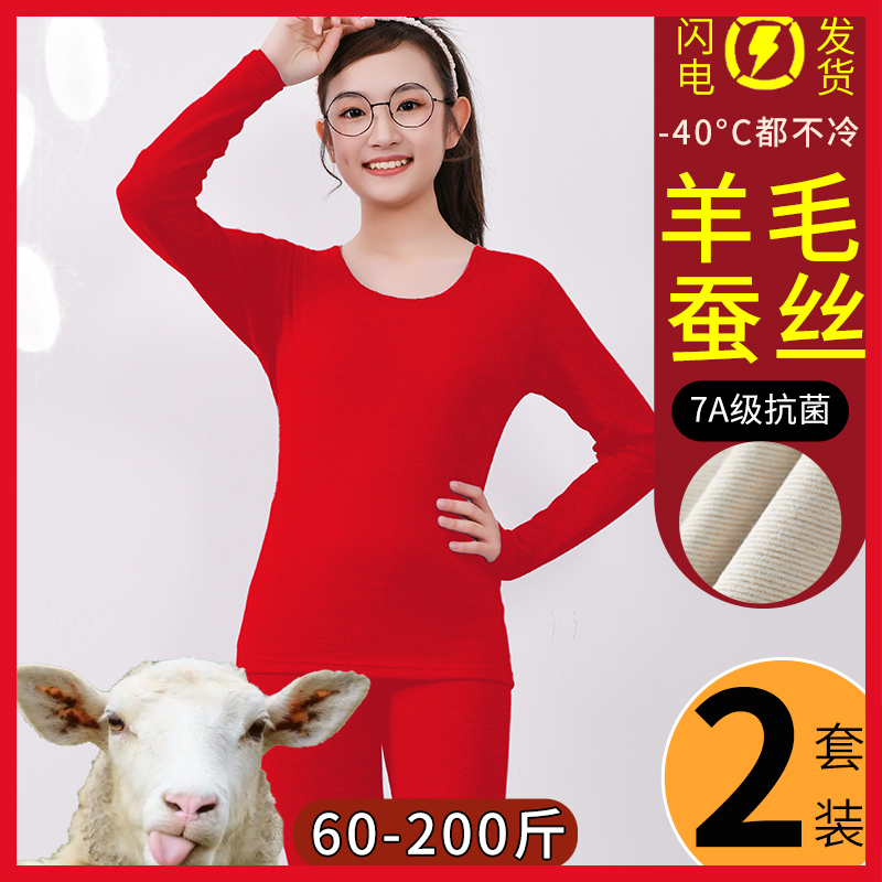 本命年学生少女内衣套装红色大童秋衣秋裤保暖加绒加厚初高中龙年