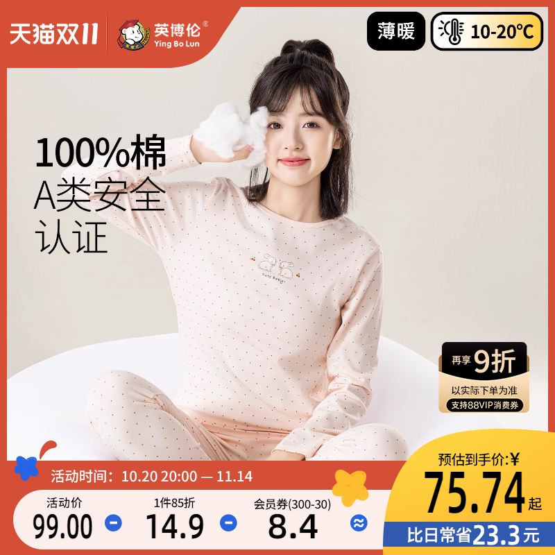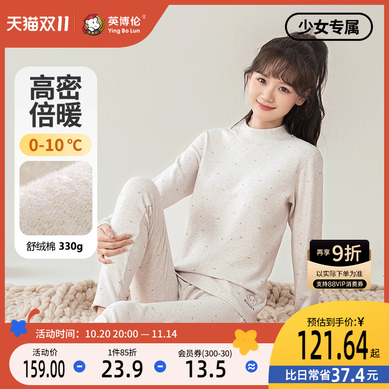 英博伦少女内衣套装纯棉保暖女大童秋衣秋裤女学生全棉睡衣棉毛衫