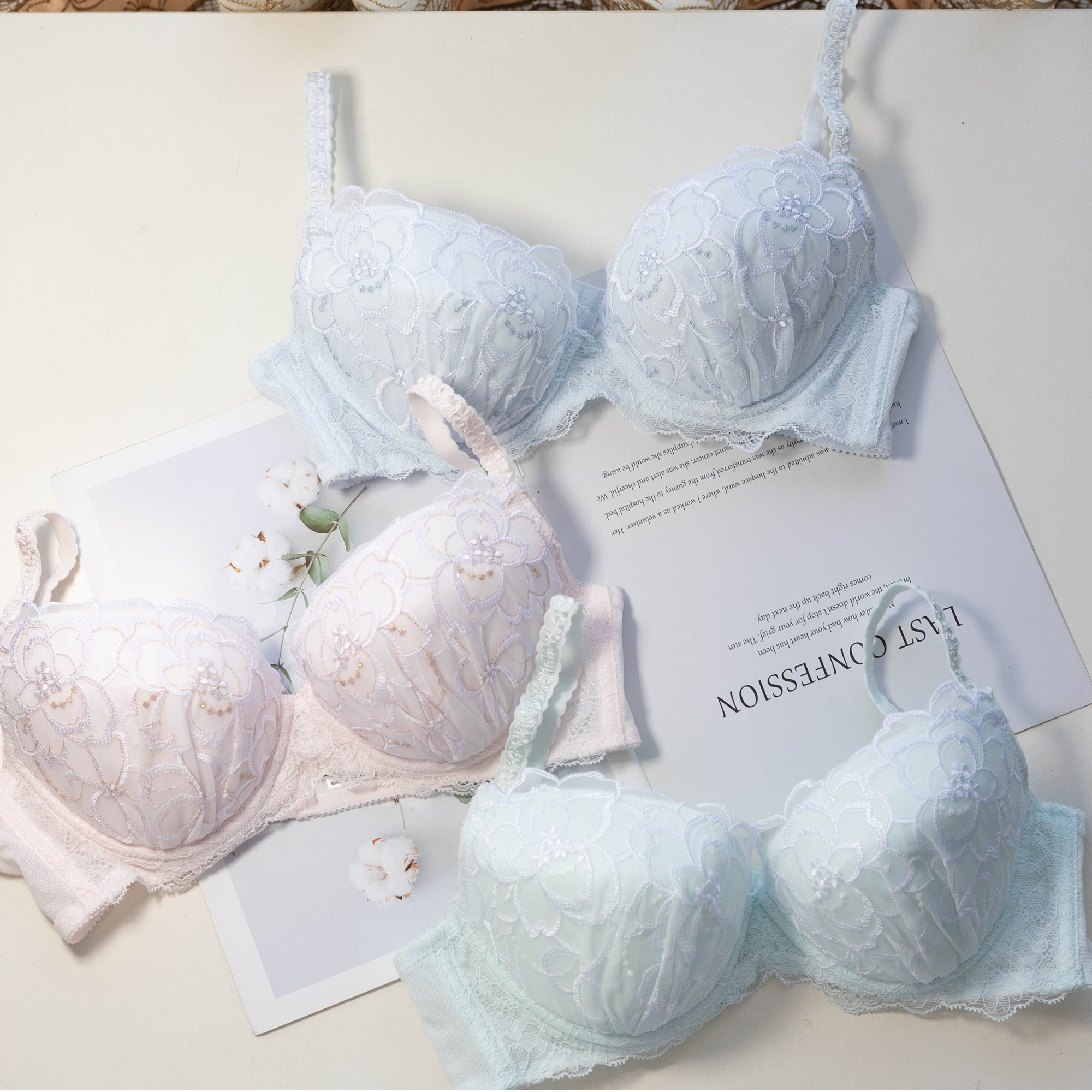 约素 灿若花海~日系刺绣花朵少女内衣套装纯欲无钢圈文胸聚拢大码