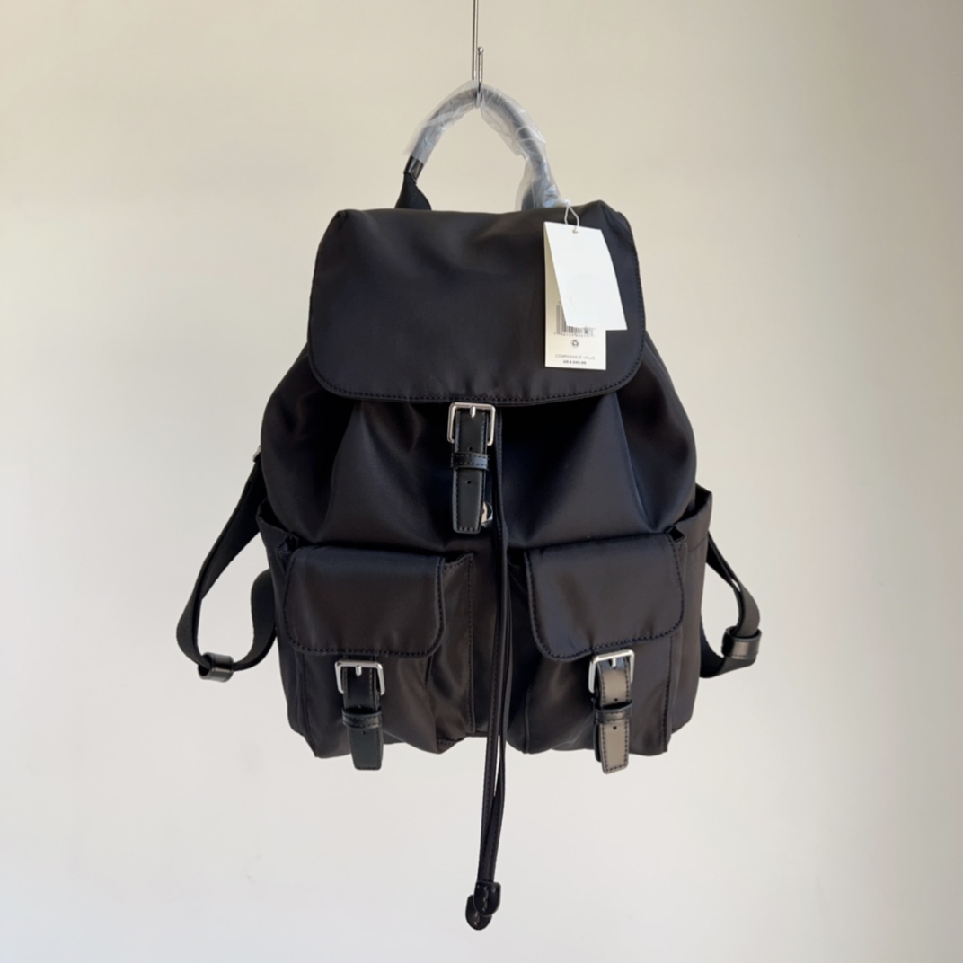 春夏尼龙百搭轻便运动收纳多兜大容量防水抽绳束口旅游双肩背女包
