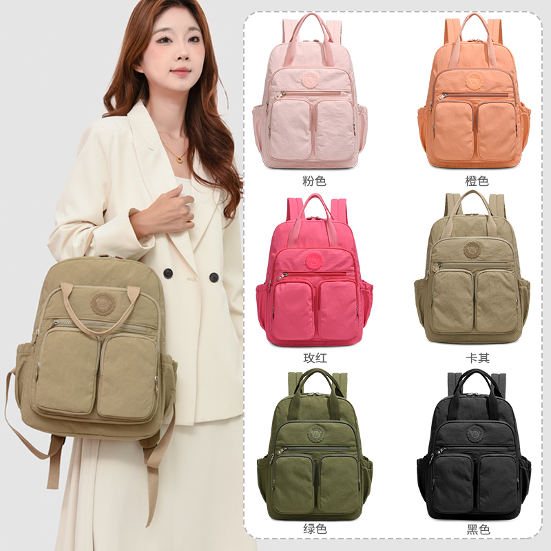 日本女士休闲手提双肩包轻便尼龙多口袋防水旅游小背包帆布电脑包