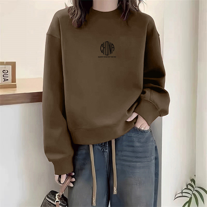 韩版潮款圆领加绒加厚宽松卫衣女常规基础款休闲时尚百搭通勤上衣