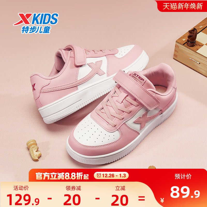 特步童鞋儿童板鞋女童魔术贴运动鞋中大童轻便耐磨鞋子女孩休闲鞋