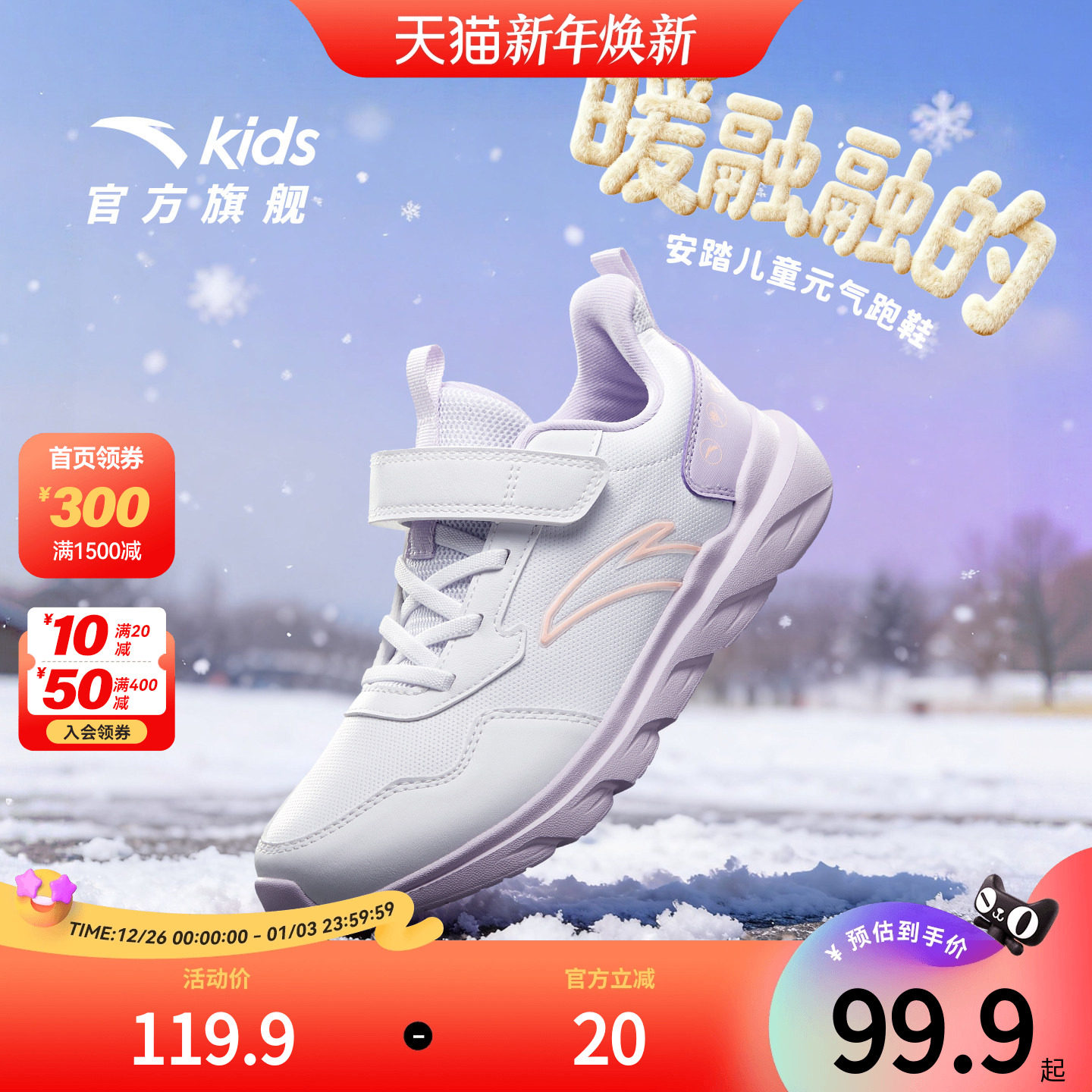 福燈贺岁|特步童鞋新年款男童鞋运动鞋女童板鞋棉鞋儿童滑板鞋男
