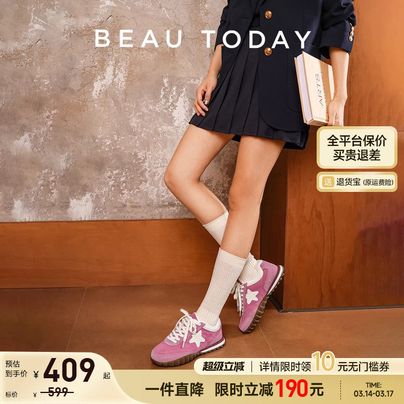 BeauToday樱花派哒星德训鞋女2026春时尚透气休闲鞋运动鞋星星鞋