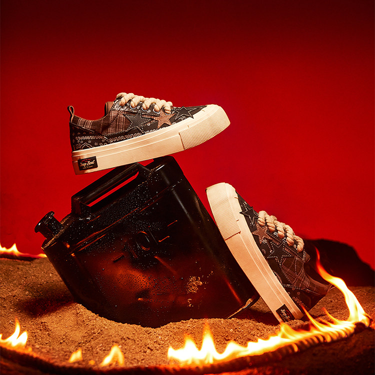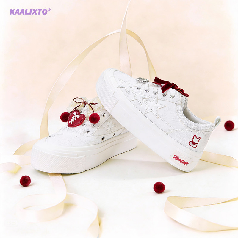 kaalixto&SK狐狸星星鞋联名焰魅红色帆布鞋时尚百搭增高情侣官方