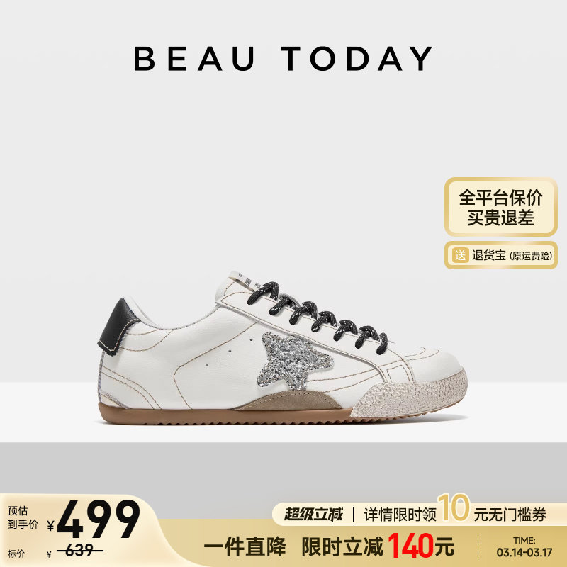 BeauToday德训鞋女款2026春小白鞋运动休闲鞋真皮板鞋女鞋星星鞋