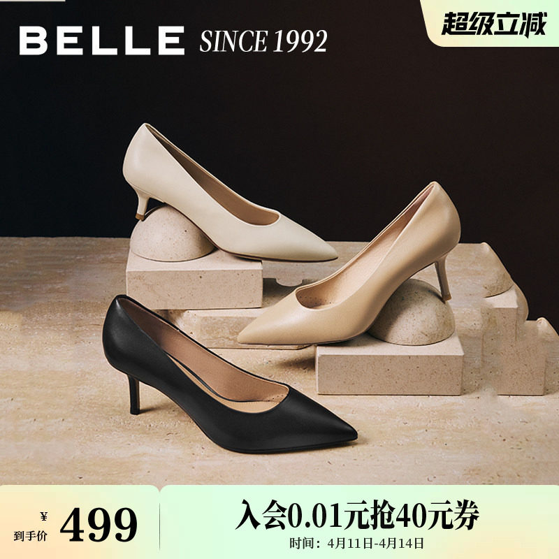 百思图26春新款通勤羊皮小猫跟高跟鞋尖头女浅口细跟单鞋K5828AQ6