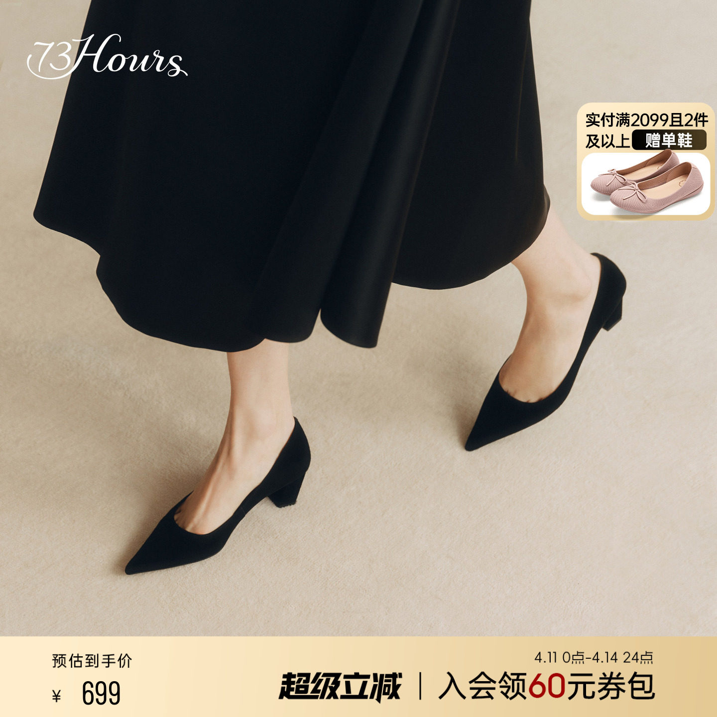 73hours女鞋Brittany春秋新款黑色不累脚高跟鞋女尖头通勤单鞋