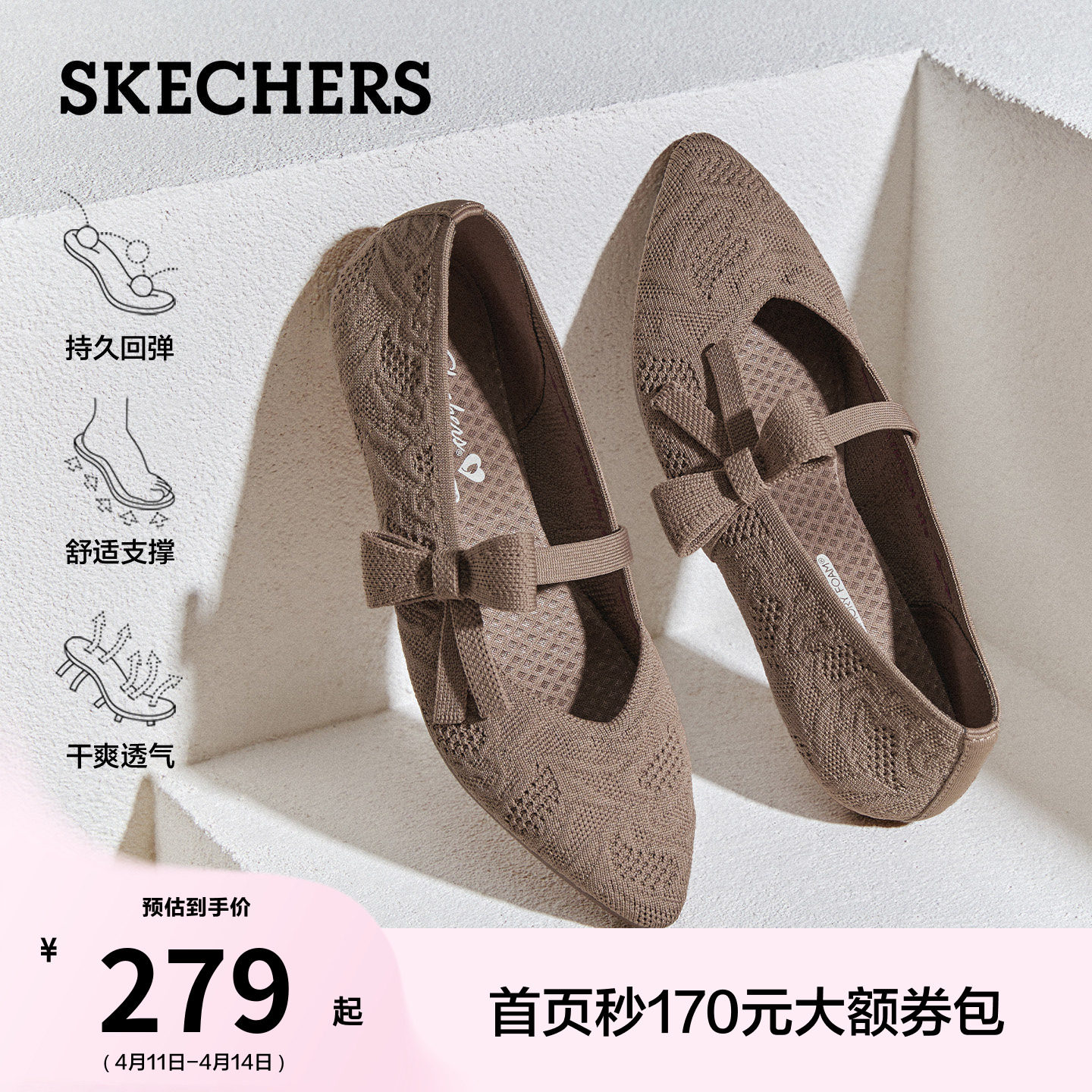 斯凯奇女蝴蝶结浅口单鞋夏季简约玛丽珍鞋时尚百搭尖头平底淑女鞋