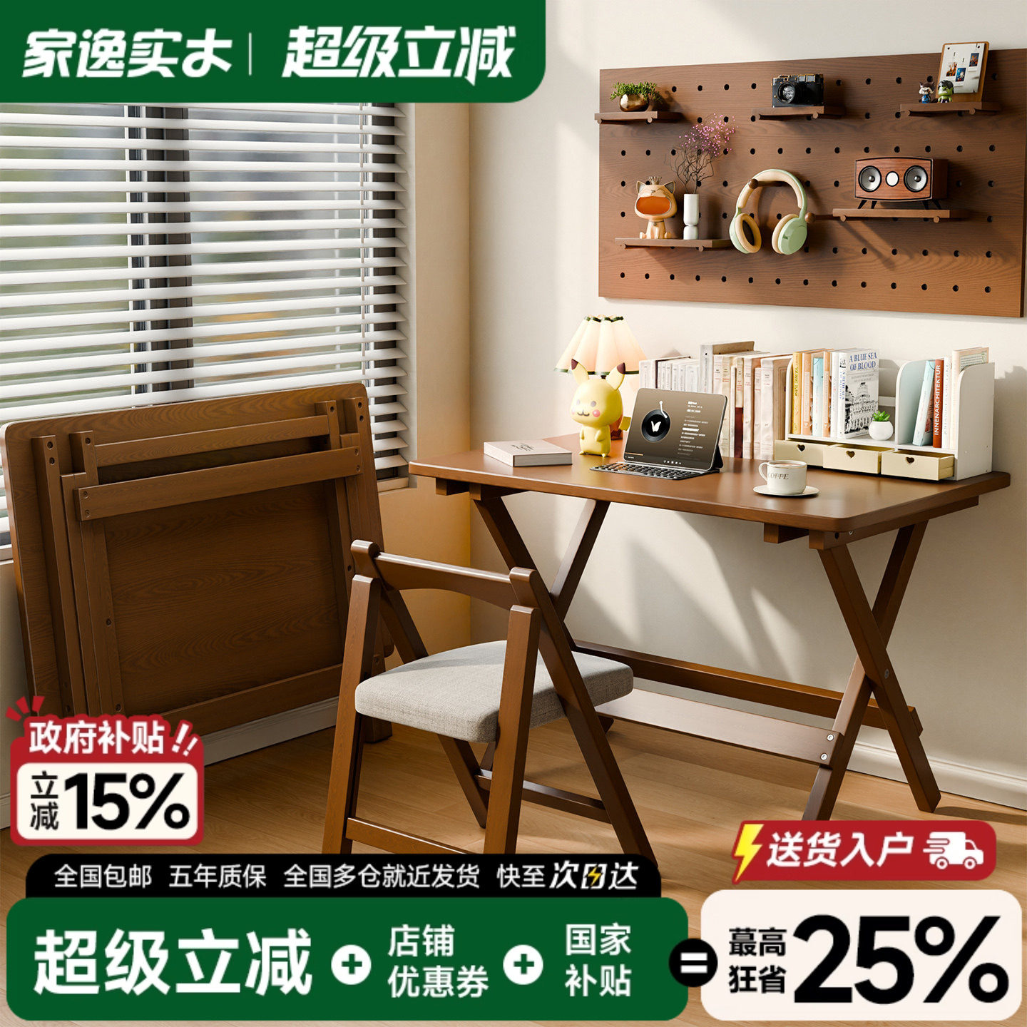 实木折叠书桌学生家用电脑桌卧室小户型床边学习小桌子简易办公桌