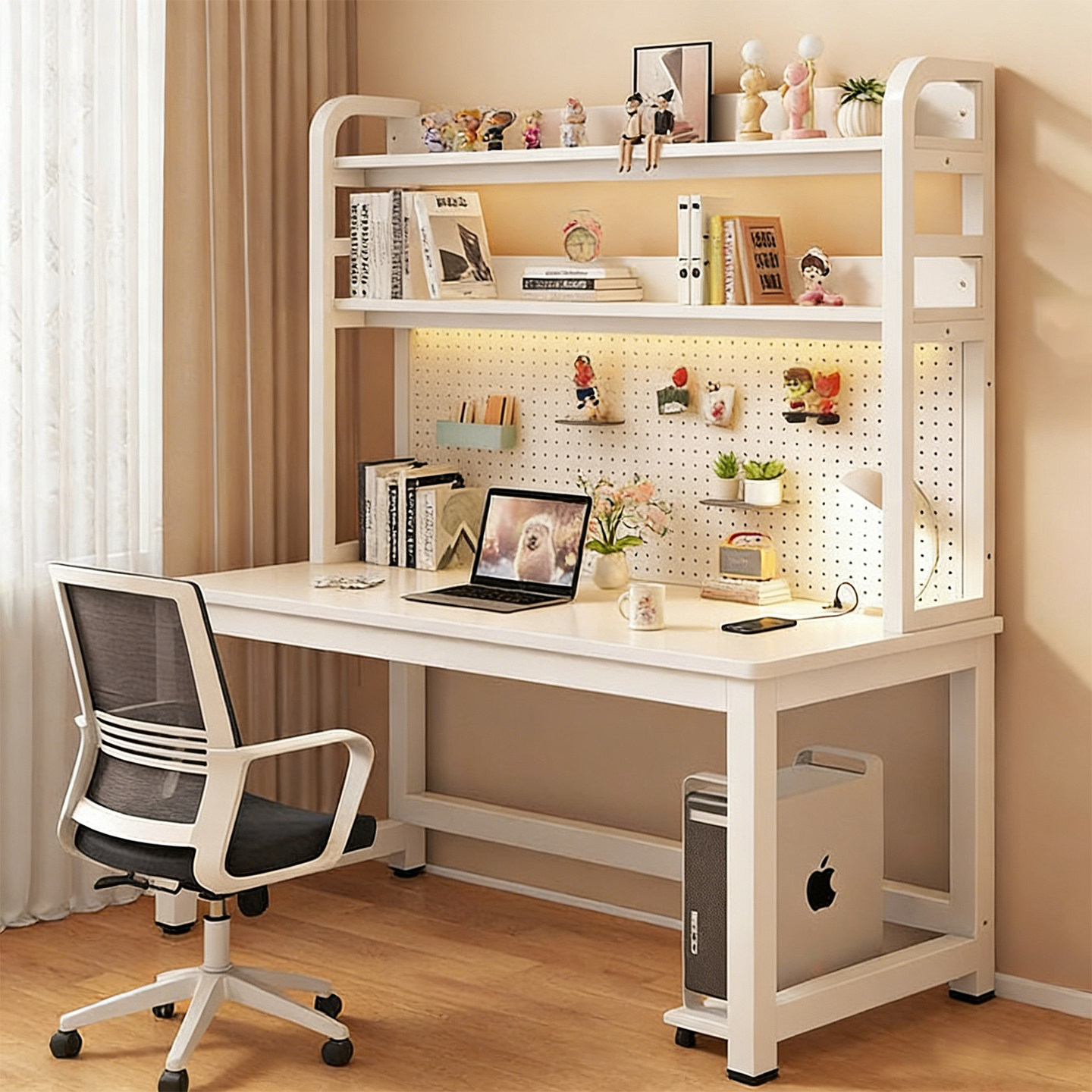 家用电脑桌书桌书架一体写字台卧室简易学习办公桌置物洞洞板桌子