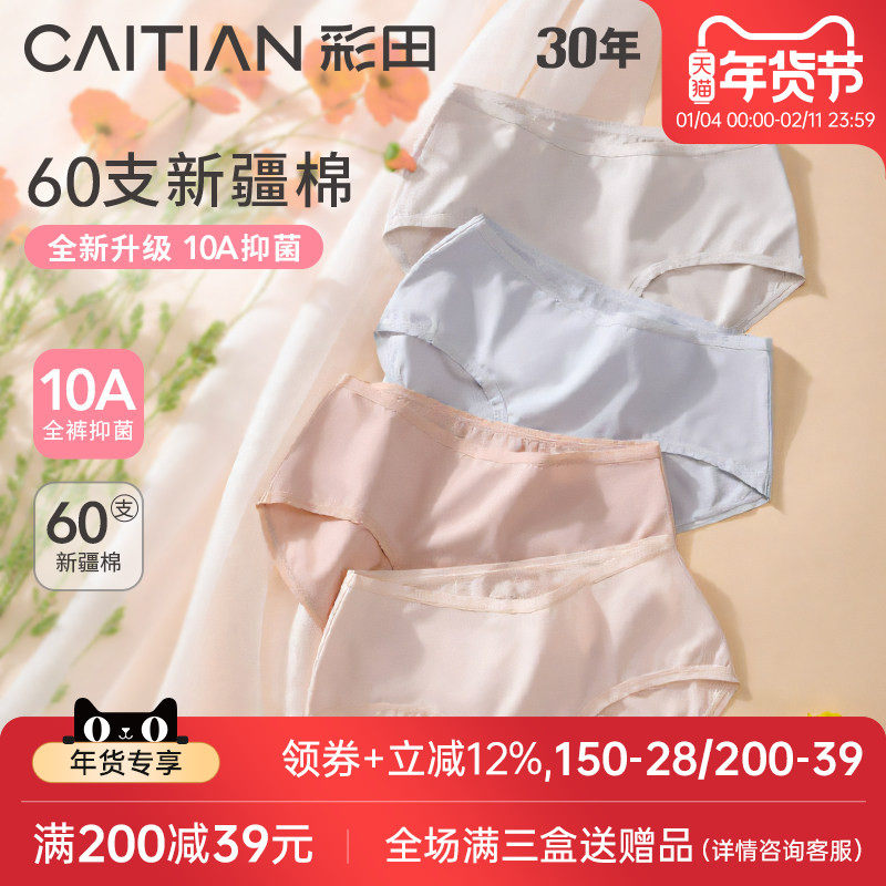 彩田内裤女四季新疆棉质面料全裤抗菌可爱少女中腰纯色透气三角裤