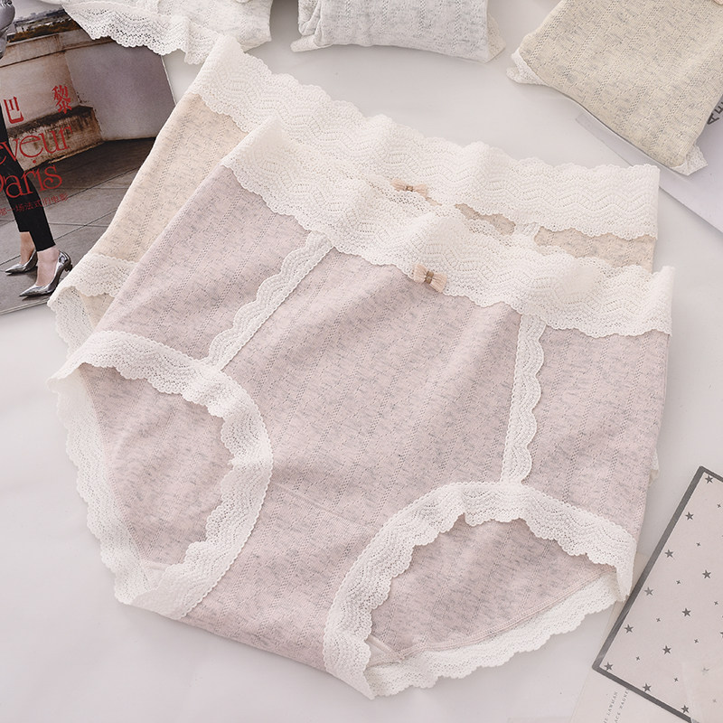 纯棉蕾丝边高腰内裤女透气网孔棉质面料大码胖mm包臀宽松三角短裤