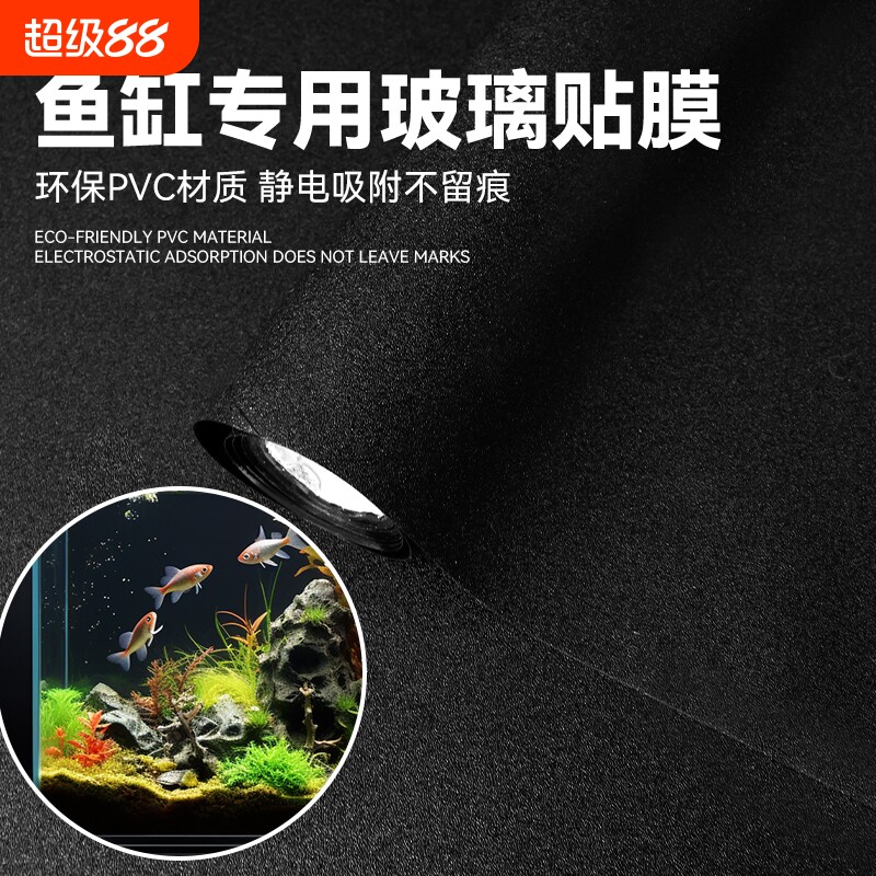 鱼缸背景贴纸黑色不透光静电贴自粘纯黑免胶玻璃缸黑膜外贴专用膜