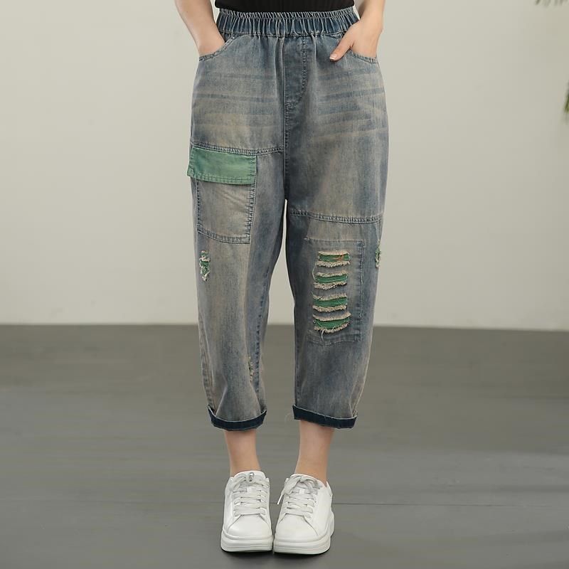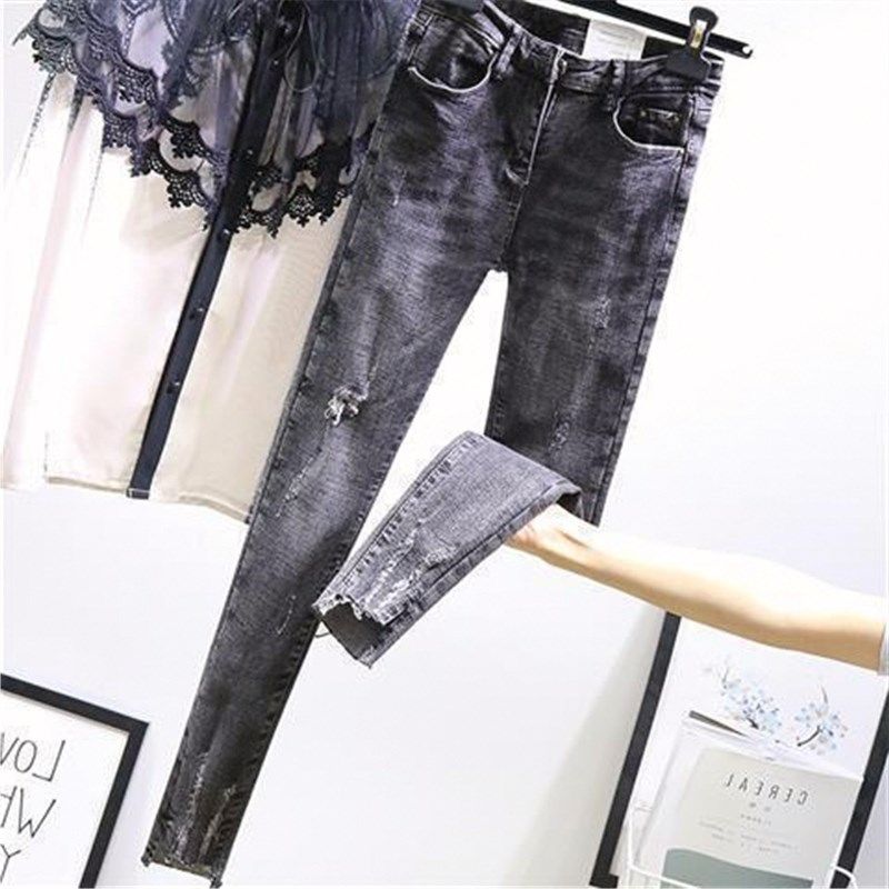 - 破洞牛仔裤女宽松乞丐bf韩国