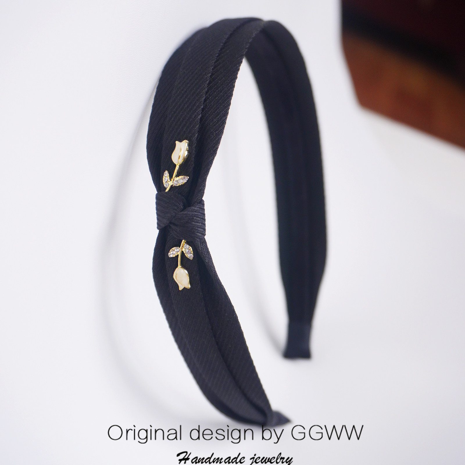 GGWW原创郁金香发箍黑色小香赫本风格头箍气质百搭压发发饰高级感