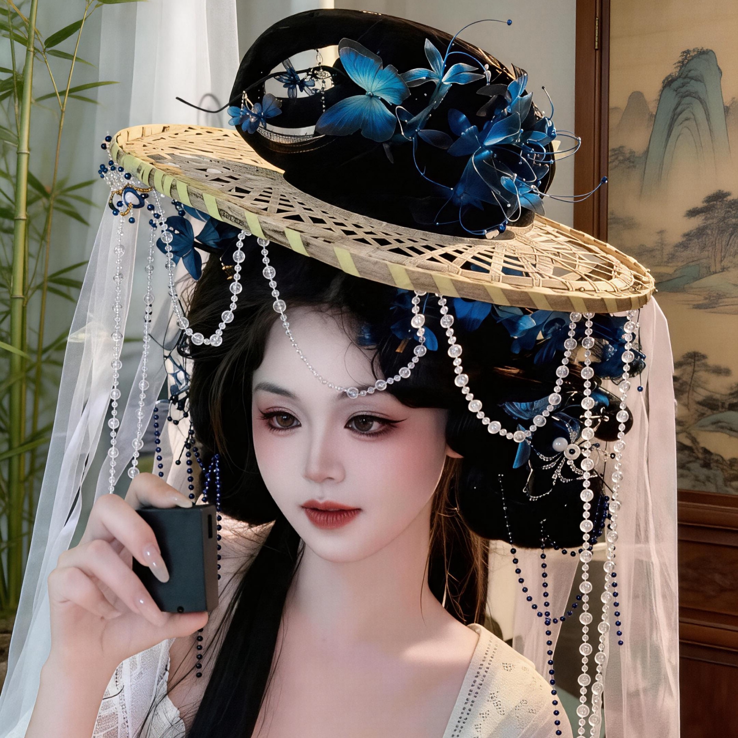 耀如春华 幽蓝 原创纯手工古风真丝烫花发夹万圣节头饰汉服配饰