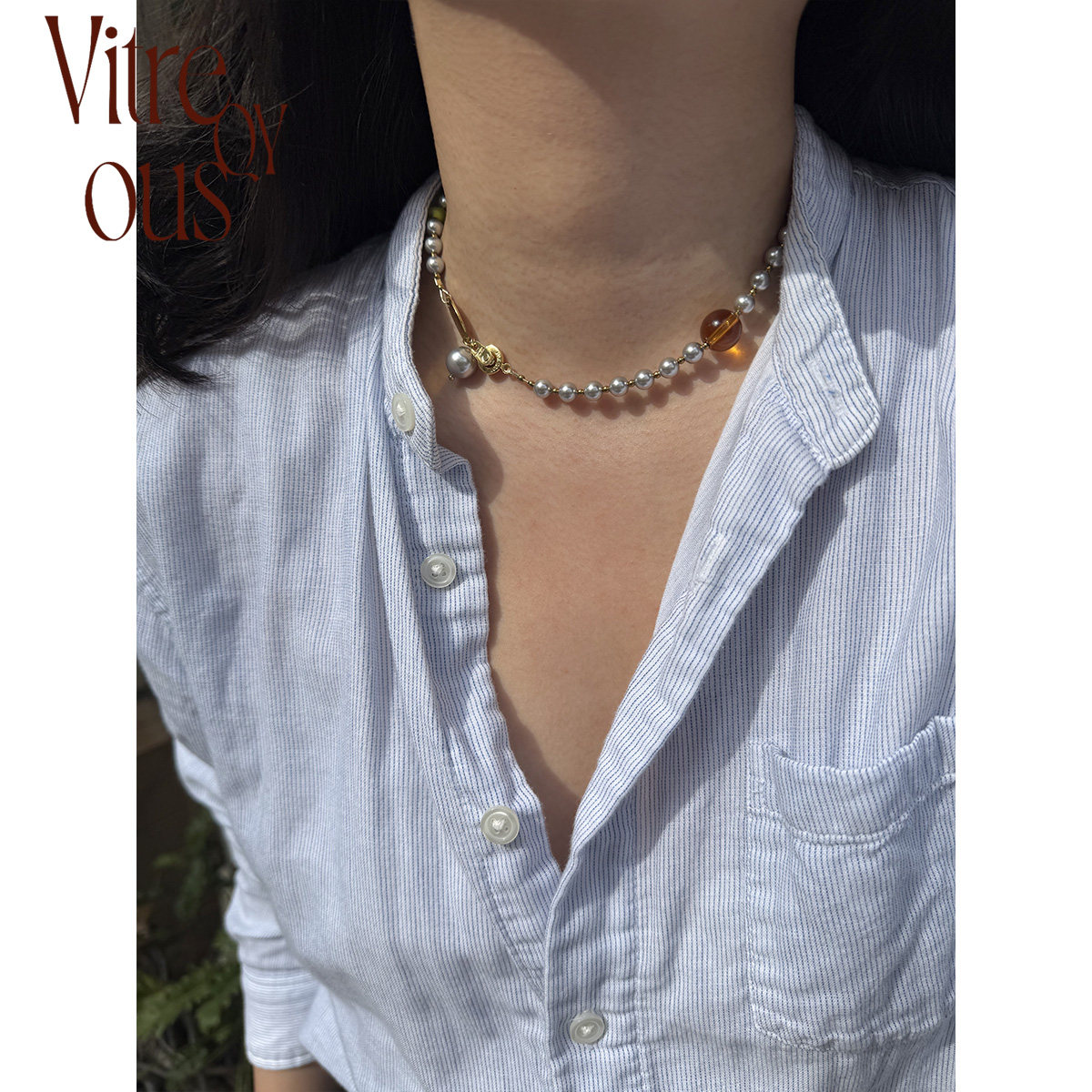 VITREQYOUS 施华洛银灰珍珠彩珠简约百搭原创小众手工串珠饰品