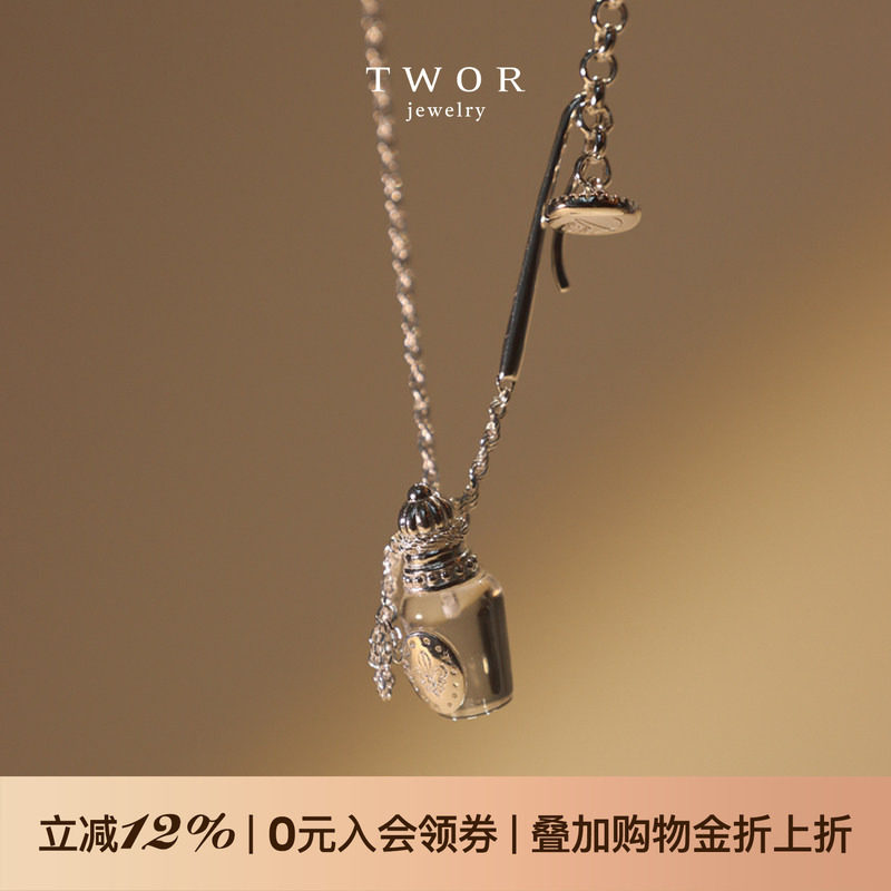 TWOR/原创设计s925银复古透明香水瓶手工流苏吊坠项链女新款饰品