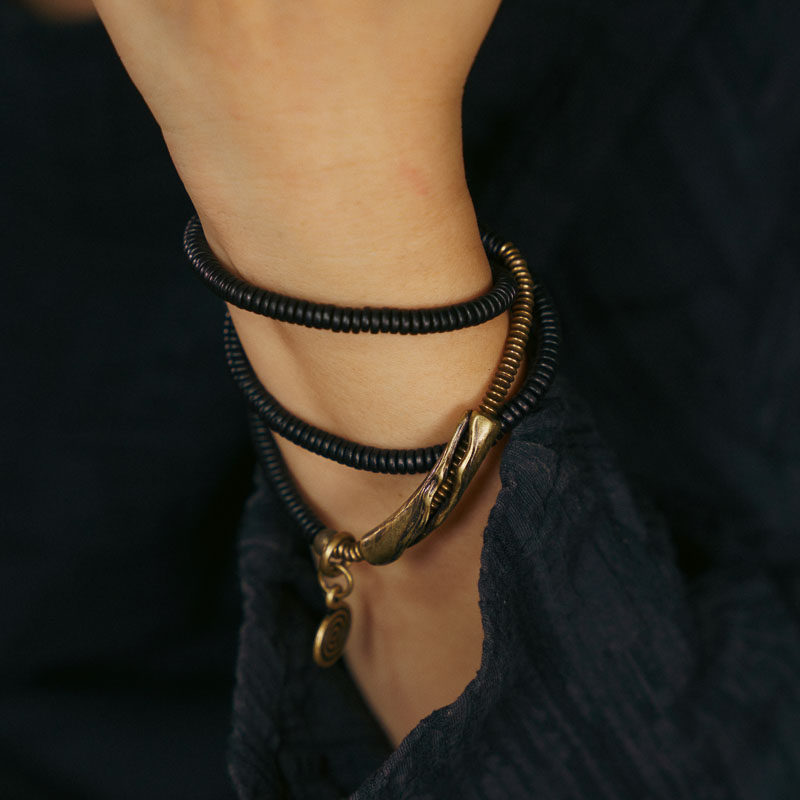 曲尾花原创复古手工肌理中国风黑檀木手链女个性民族风饰品手串男