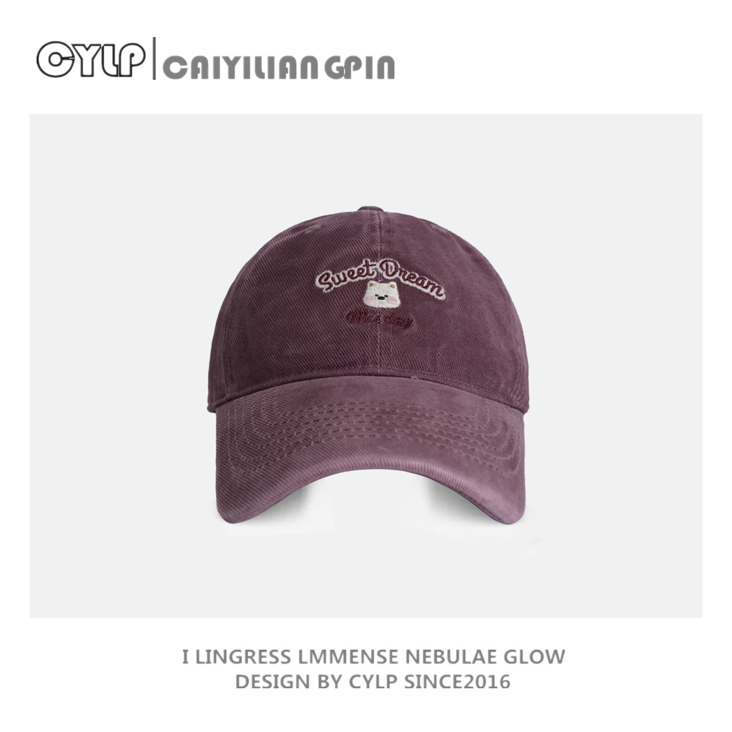 芝士商店~紫色软顶棒球帽女秋冬休闲百搭帽子显脸小大帽檐鸭舌帽