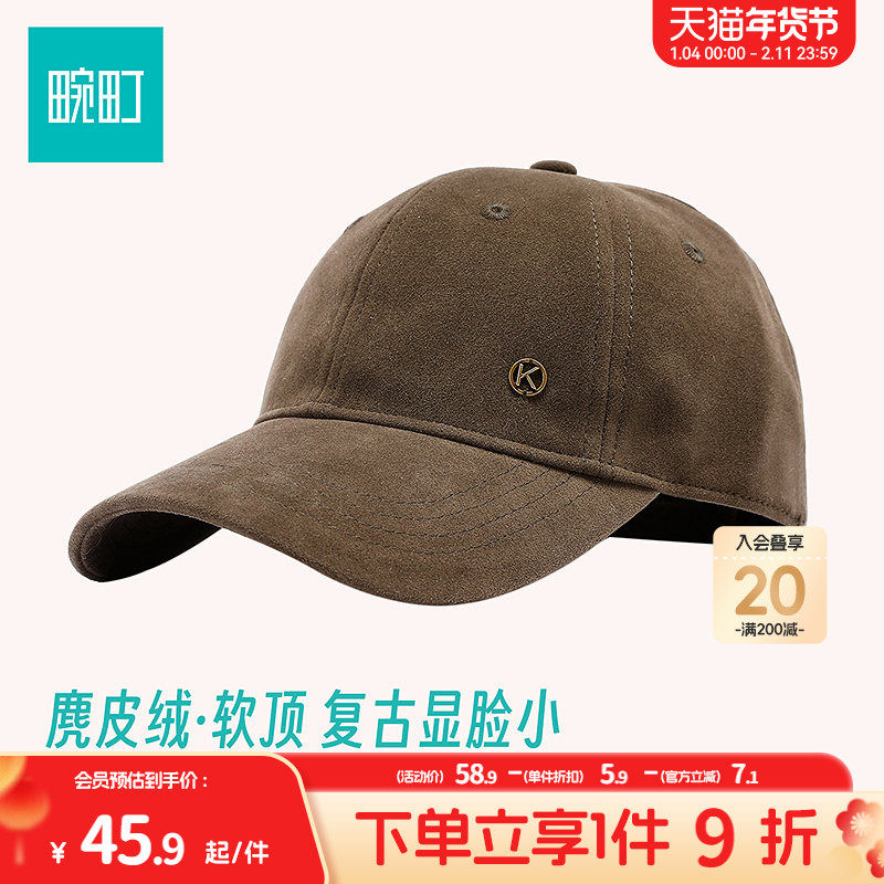 畹町麂皮绒棒球帽女秋冬季复古质感百搭鸭舌帽显脸小软顶弯檐帽子