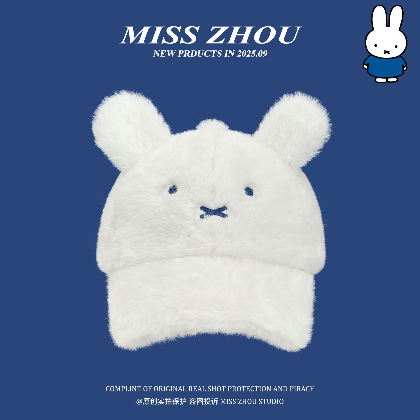 韩版新款米菲毛绒棒球帽女秋冬加厚保暖甜美可爱兔子耳朵鸭舌帽潮