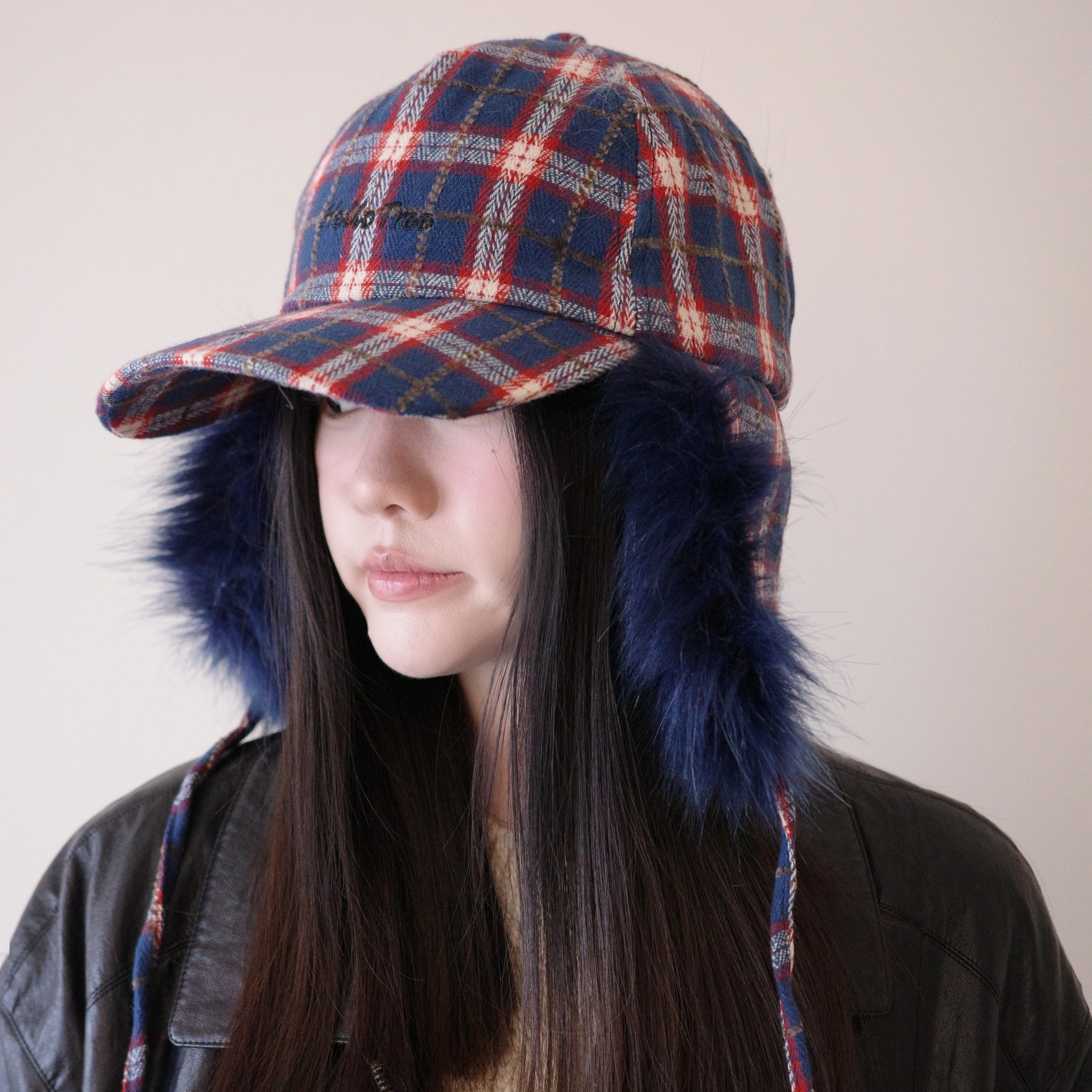 ins加绒加厚格子棒球帽女秋冬韩版复古百搭系带仿皮草护耳雷锋帽