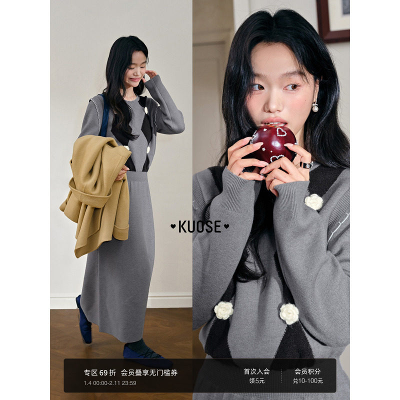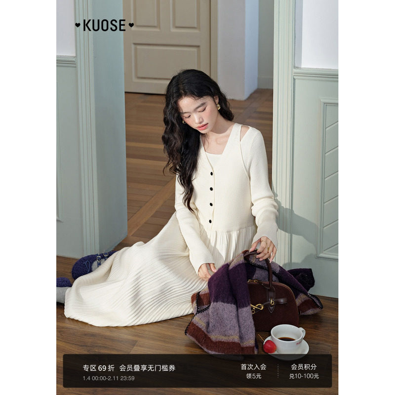 森女部落原创气质淑女针织假两件连衣裙长裙2025年新款女装春秋款