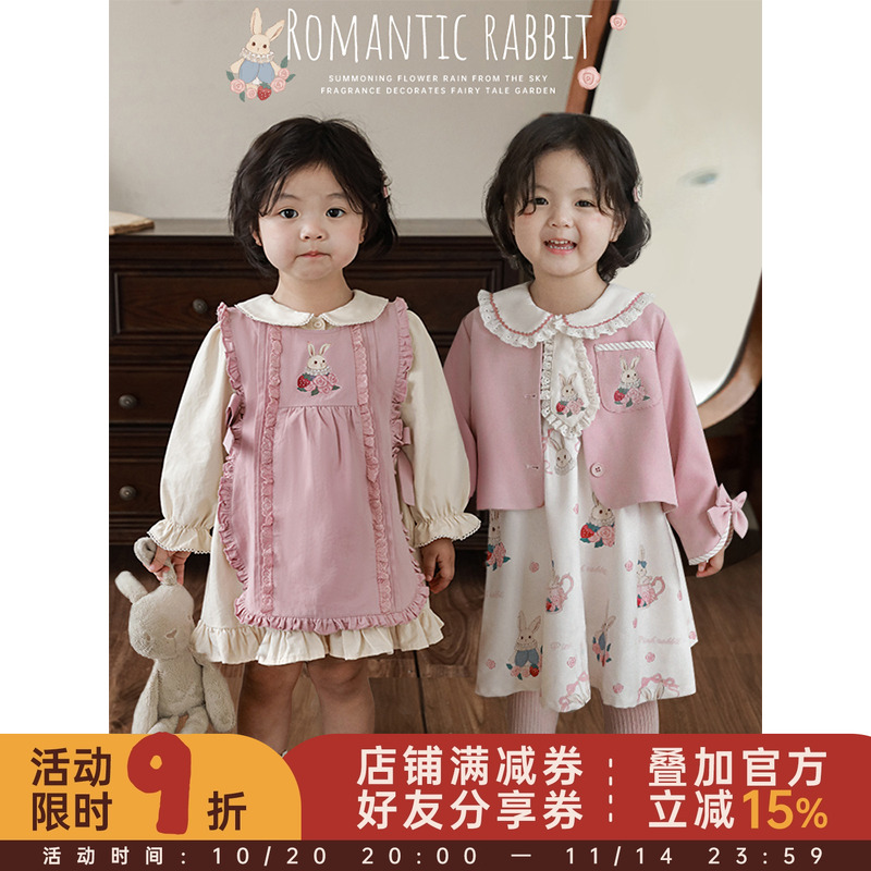 幼悠女童洛可可风套装儿童时尚高腰连衣裙秋冬蝴蝶结外套多件套潮