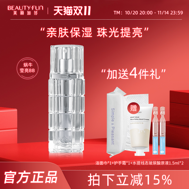 美丽加芬旗舰店官方蜗牛莹亮BB霜女学生隔离提亮裸妆遮瑕bb霜正品