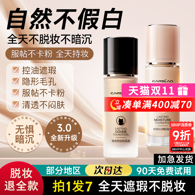 卡姿兰粉底液持久不脱妆遮瑕bb霜干皮小奶猫油皮控油小夜猫正品女