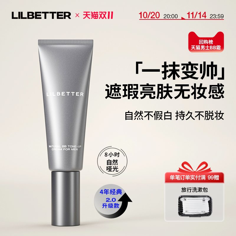 Lilbetter男士遮瑕BB霜素颜霜痘印不脱妆保湿懒人无暇自然粉底液