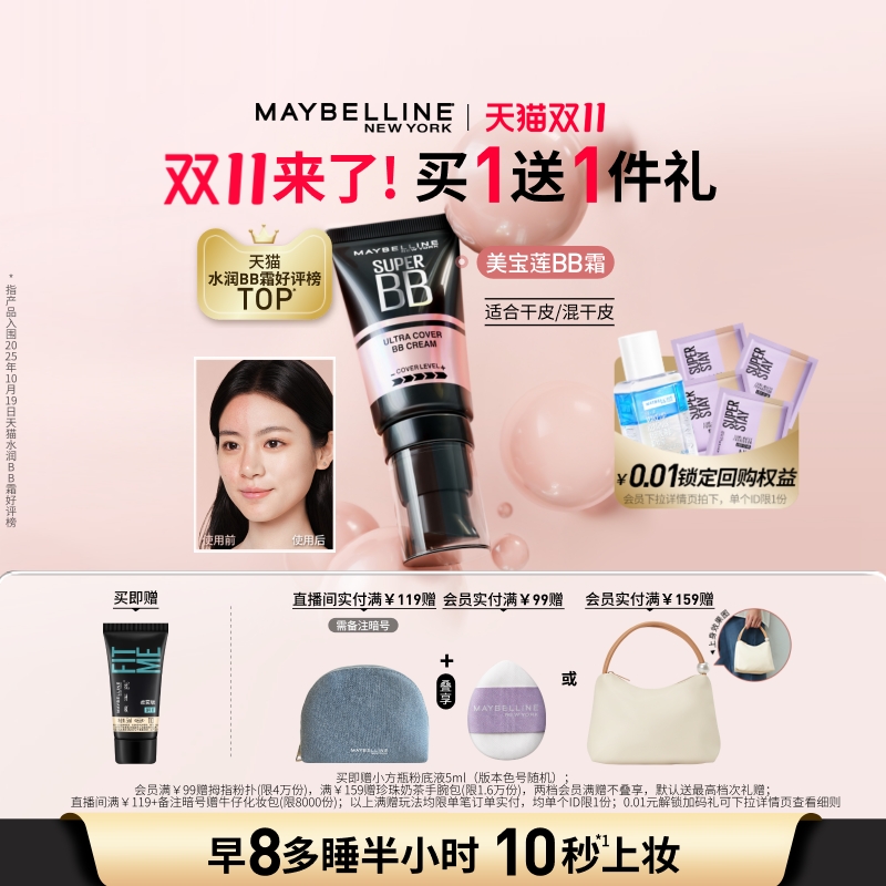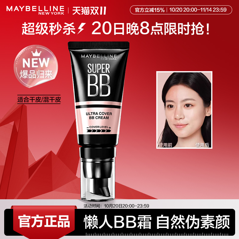 【双11抢先购】美宝莲纽约巨遮瑕BB霜滋润保湿裸妆持妆素颜霜Z