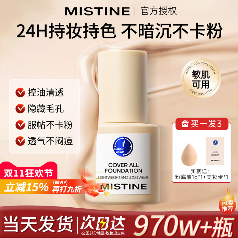 Mistine蜜丝婷小蓝盾粉底液遮瑕bb霜保湿持久不脱妆混干油皮正品