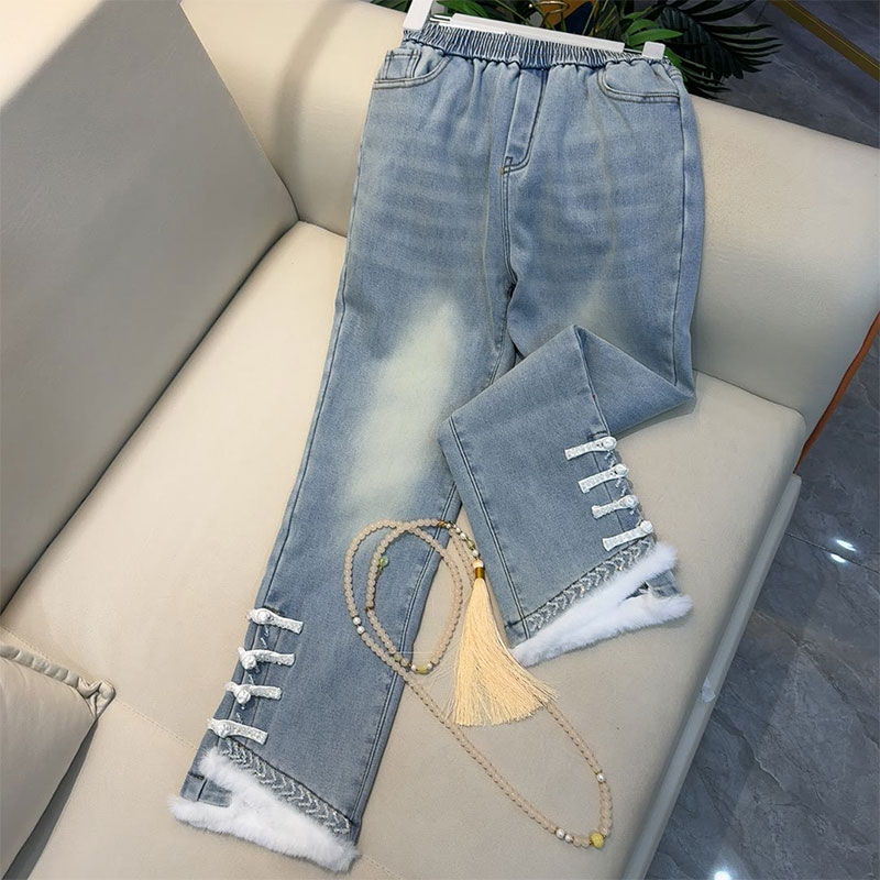 2025年春季新款复古民族风设计感小众不规则牛仔裤N576075