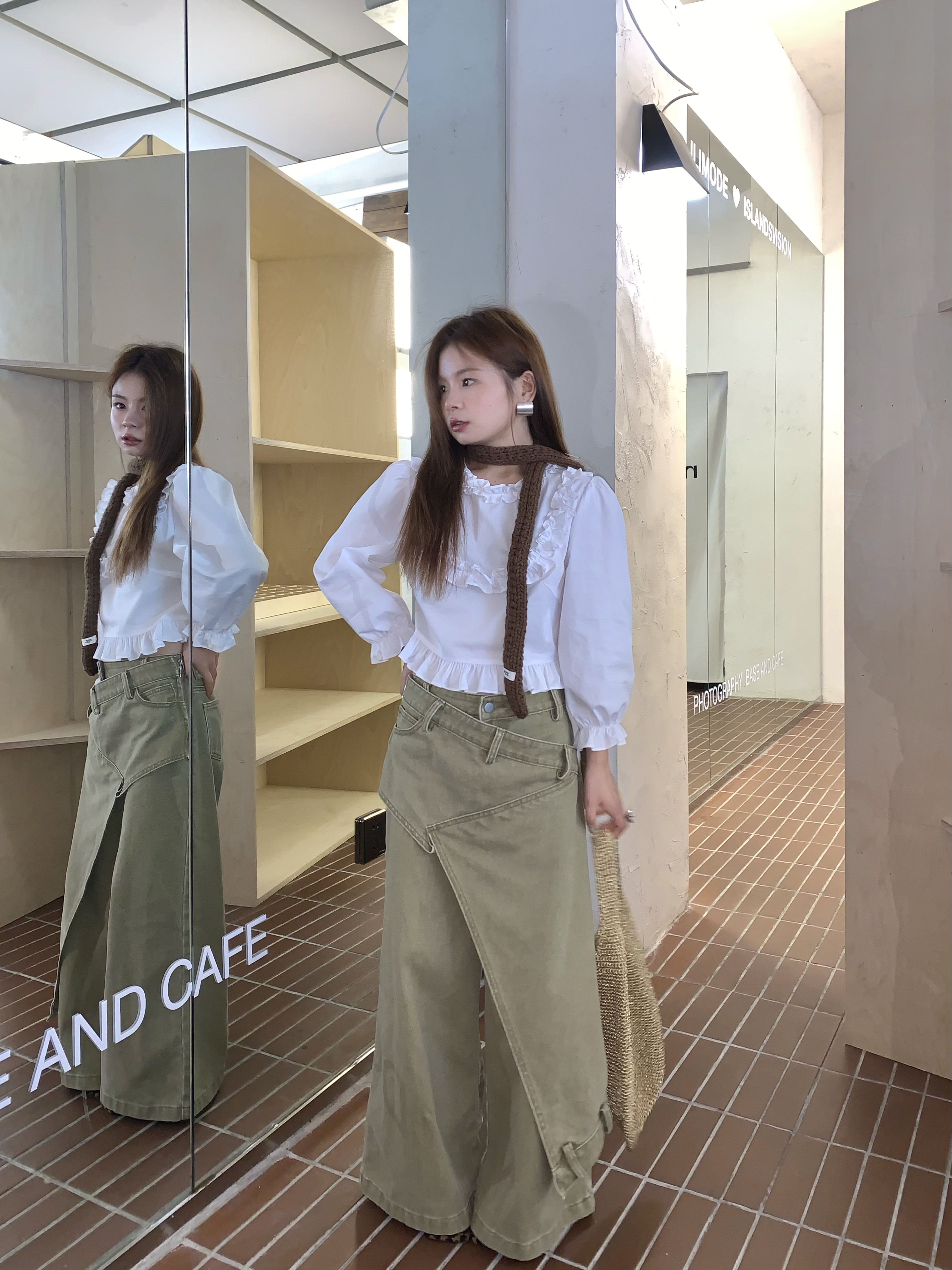 THREE GOOOD殷三吉搭片不规则牛仔裤女设计感小众阔腿裤
