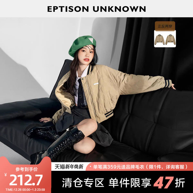 EPTISON外套女2025秋季新款正反两穿美式棉服高级短款薄棒球服