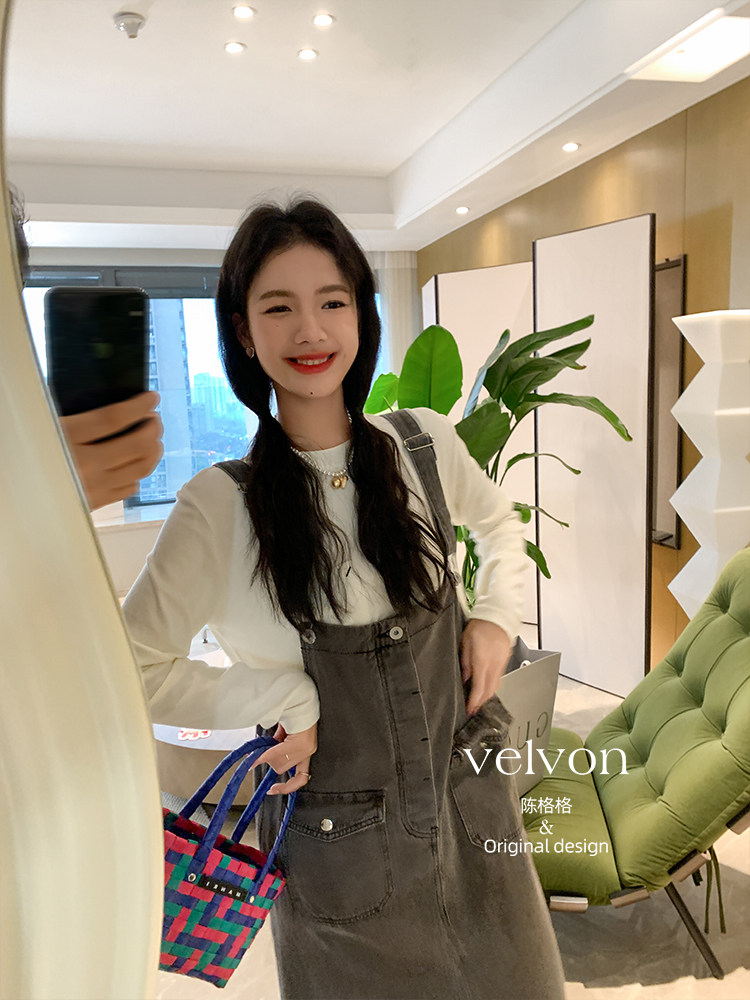 【陈格格】冷淡系~灰色a字牛仔背带裙外搭叠穿日系抽绳小众裙子