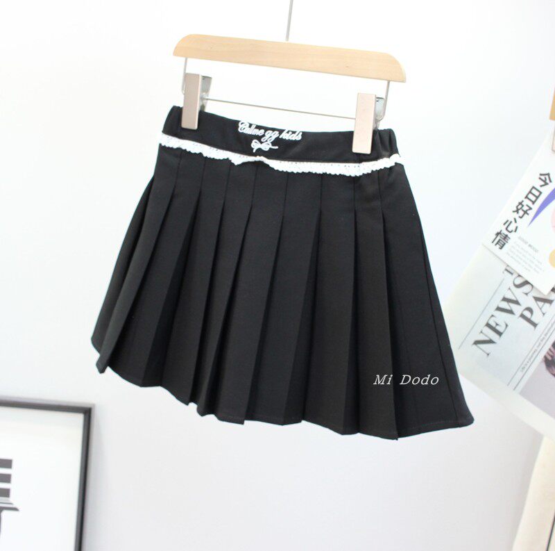 9-19码叫我格格女童甜美新款中大儿童格子百褶短裙A字半身显瘦裙
