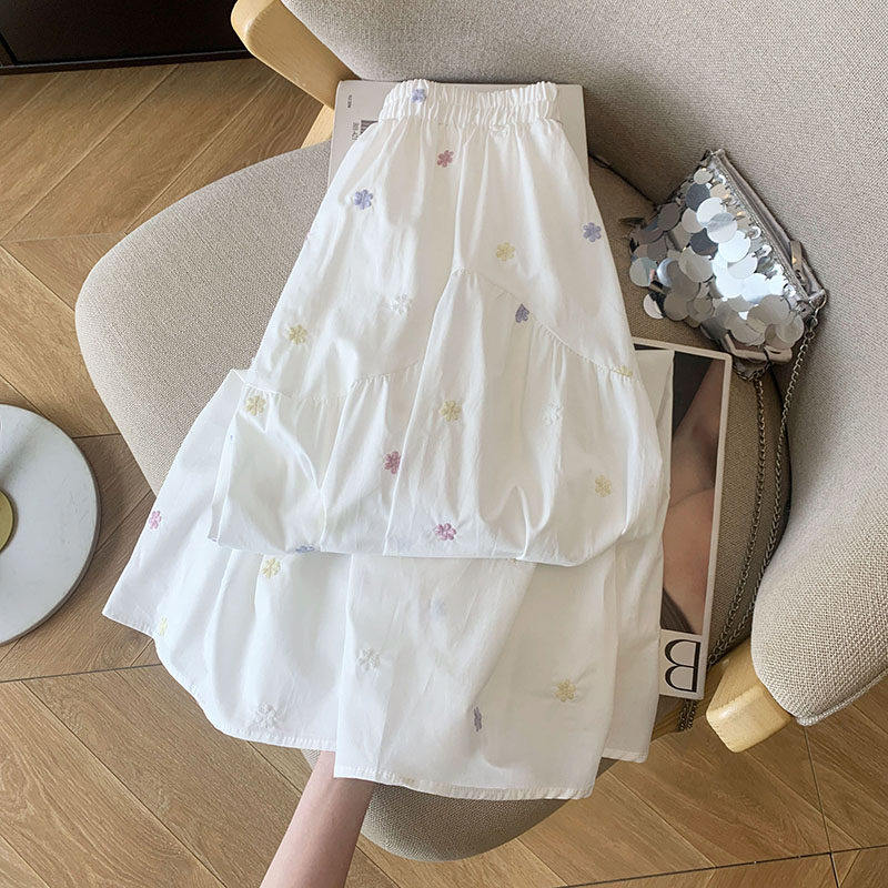 清仓捡漏~外贸胖mm大码240斤女装花朵刺绣半身裙高腰大裙摆a字裙
