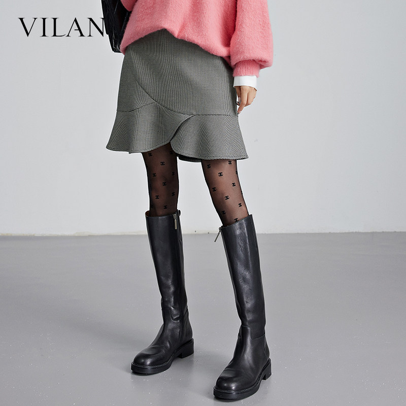 R&K秋冬复古双口袋千鸟格格子毛呢半身裙小香风高腰A字包臀短裙女