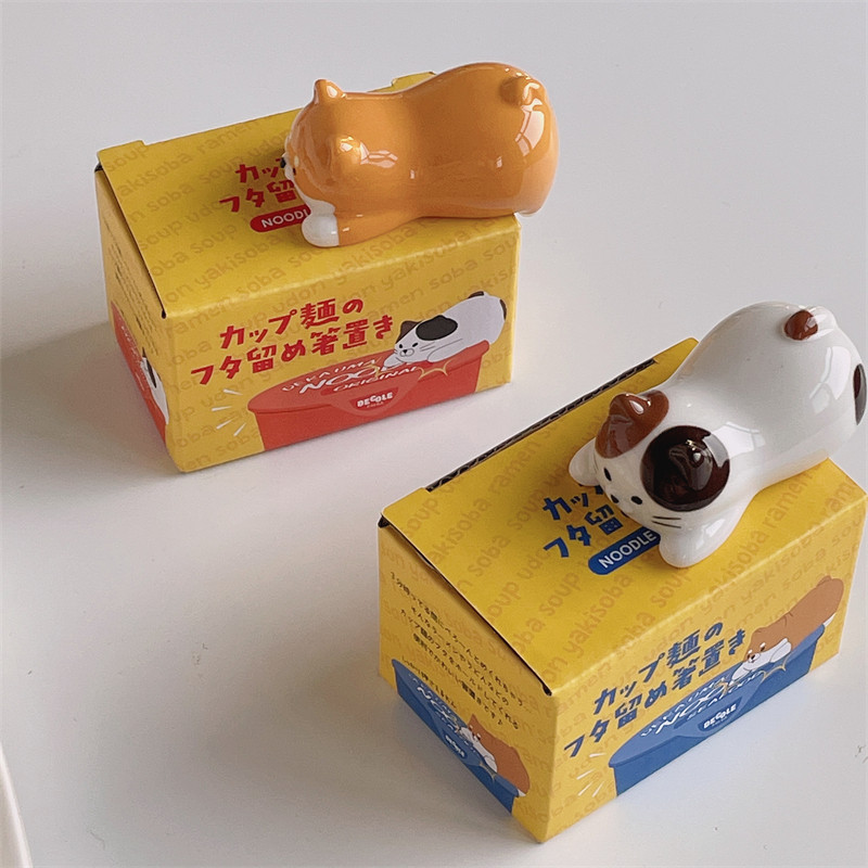 FunLife生活馆 可爱卡通陶瓷猫咪柴犬筷子架筷子托 压泡面神器