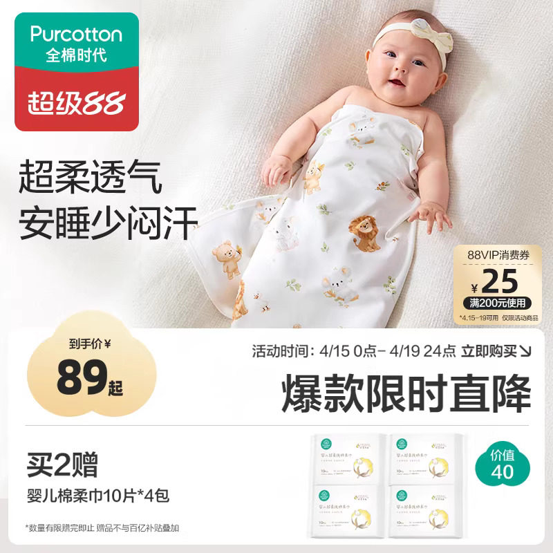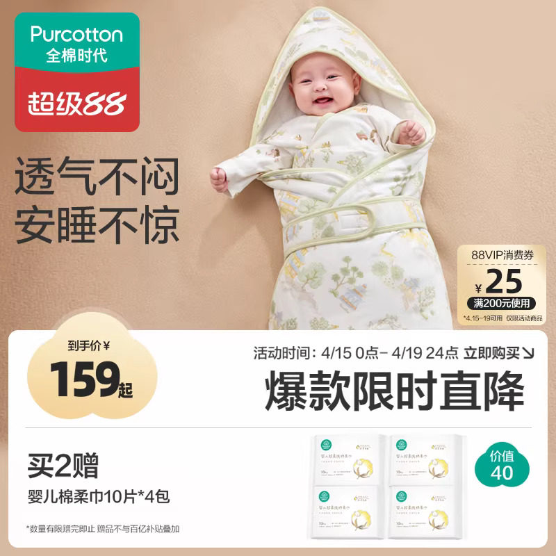 全棉时代婴儿包被新生宝宝春夏款外出包单纯棉防惊跳抱被四季襁褓