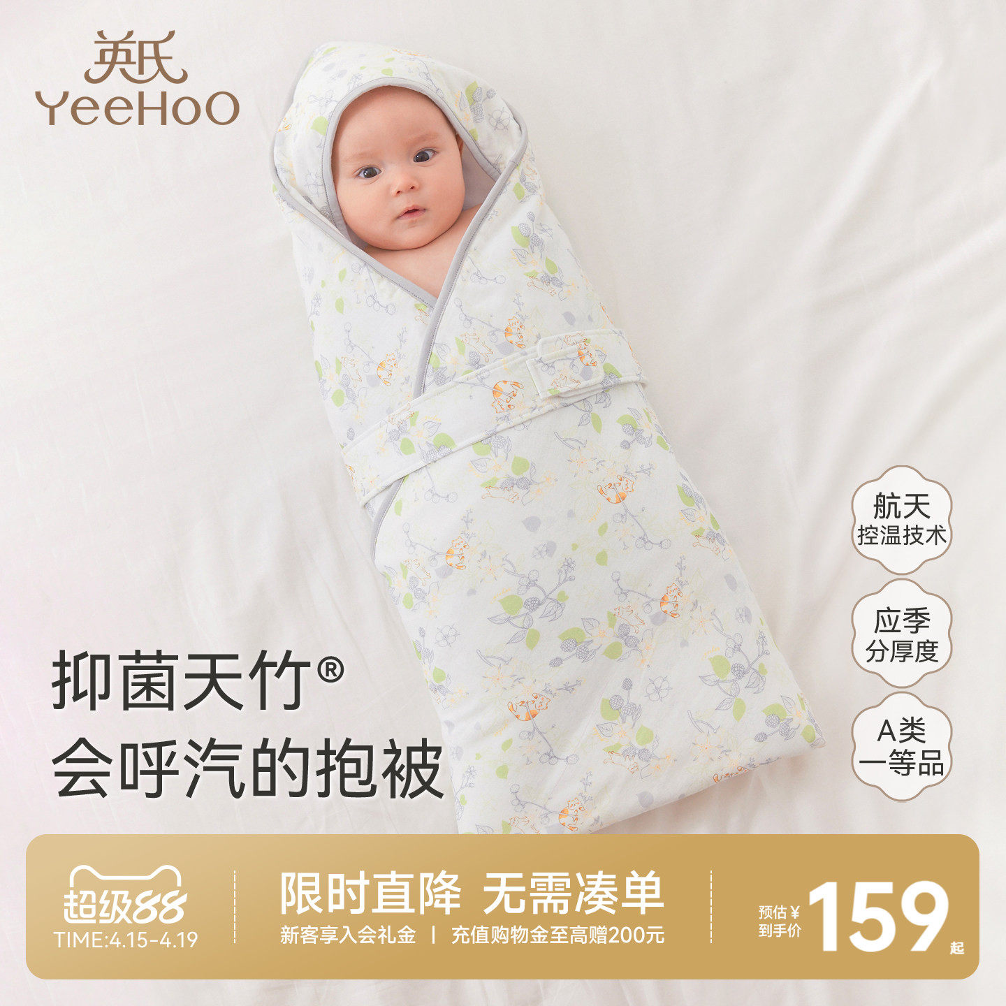 英氏包被婴儿秋冬款5A抗菌新生儿宝宝春夏抱被加厚恒温防惊跳包单