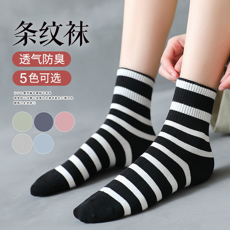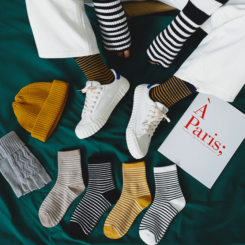 袜子女中筒袜韩版日系春秋款女士条纹长袜个性百搭秋冬季ins潮流