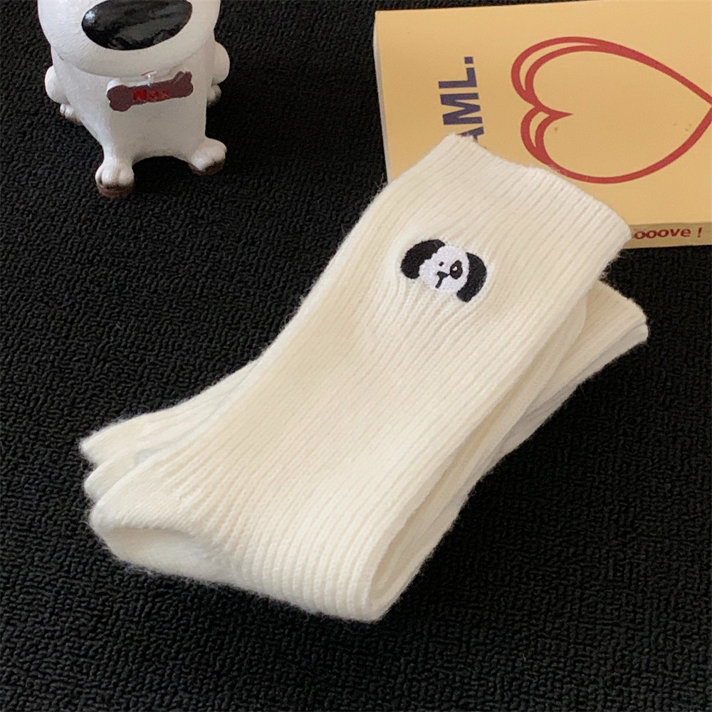 韩版网红个性ins舒适百搭少女心堆堆袜女秋冬可爱刺绣狗狗中筒袜