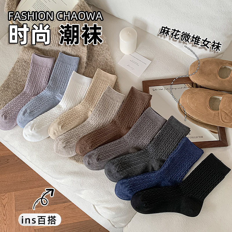 潮袜秋冬个性韩版麻花彩色潮袜麻花微堆女中筒袜简约百搭秋冬棉袜