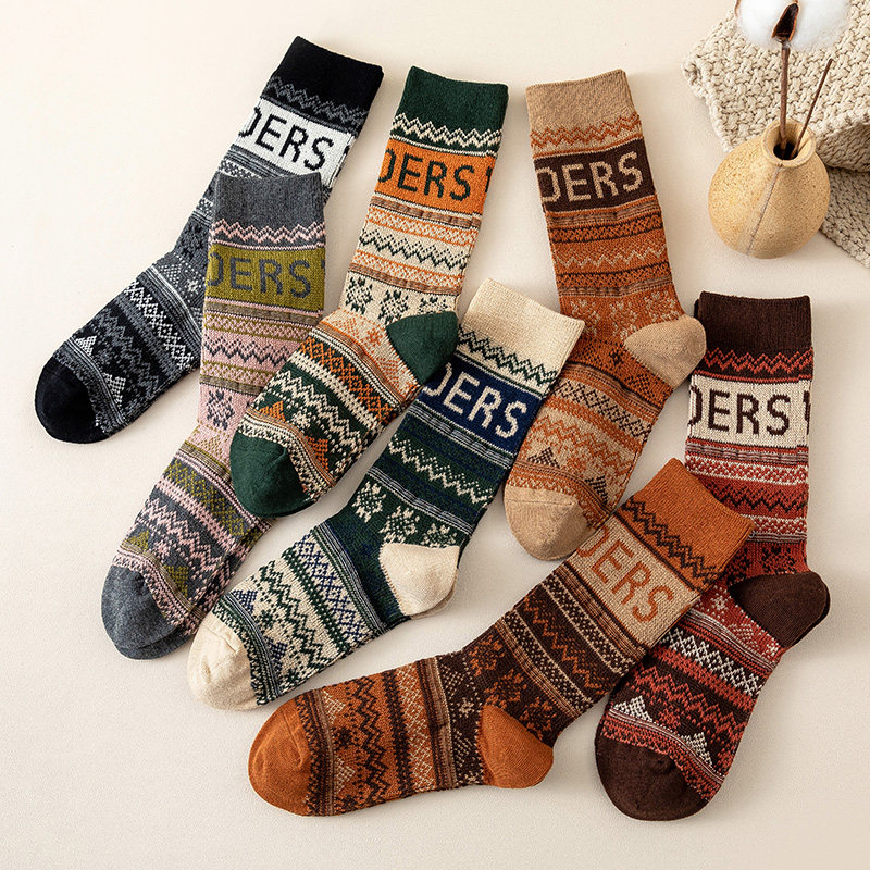 2025年秋冬新款刺绣羊毛袜子女袜潮流保暖双罗口美袜韩版个性百搭